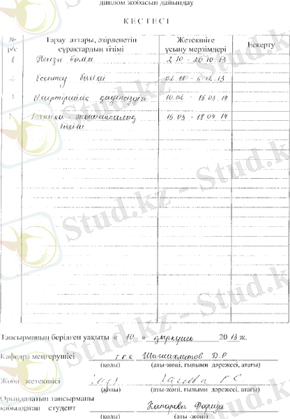 ұйымдастыру қарастырылды. Жұмыс теориялық және практикалық жағынан