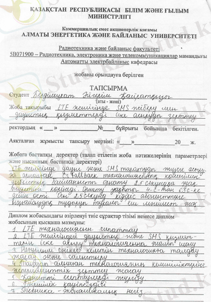 Жұмыстың мақсаты LTE желісінде дауыстық және SMS қызметтерін