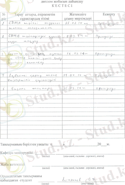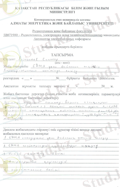 Бұл бітіру жұмысы CDMA стандартының параметрлерін зерттеуге