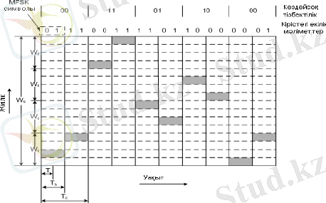 MFSK (M = 4, k = 2) дабылының өзі пайдаланылған FHSS - тың жедел