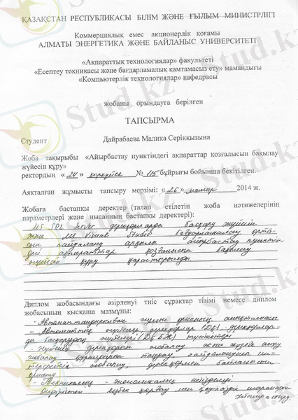 - АЖО құруының техникалық тапсырманы құрстыру;