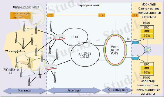 E-UTRAN желісінің «жоғары»линиясында тұтынушылардың бір-біріне