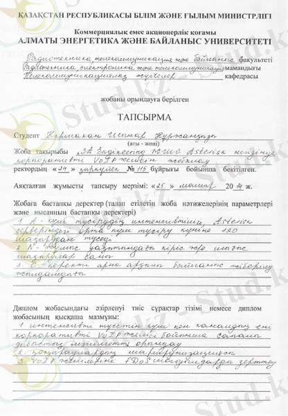 Дипломдық жобамның тақырыбы корпоративтік VoIP желісін Asterisk