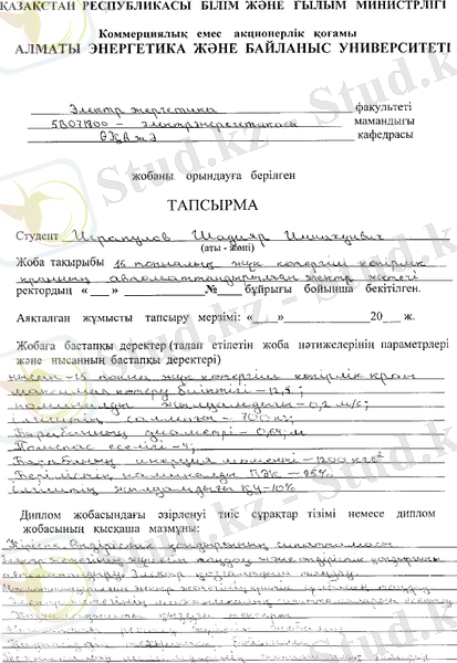 автоматтандырылған электр жетегі ойлап құрастырылды. Электр жетегі