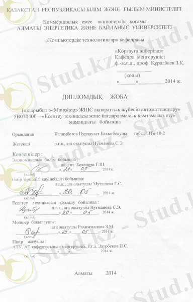 Бұл дипломдық жұмыста “Motoshop” компаниясының