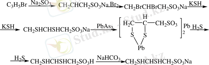 Унитиолдың синтезі алты стадиядан тұрады: