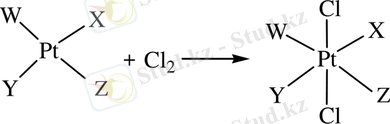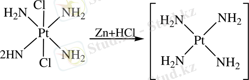 (SO, N 2 H 4 т. с. с. ) қатысуымен Pt (ІV) молекуласының конфигурациясы өзгермей, платина (ІІ) дейін тотықсызданады. Мұнда октаэдрлі құрылыстағы Pt(ІV) комплекстің үш координатасының тек біреуіндегі ғана лиганд бөлініп қалады.