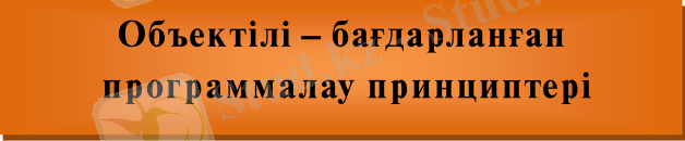- Инкапсуляция мәліметтер мен осы мәліметтерді өңдеу алгоритмдерін біртұтас етіп біріктіру.