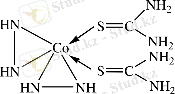 Со(П) қосылыстарының этанолды ерітінділерде тиомочевинамен әрекеттесуі кезінде қызғылт-қызыл түсті комплекстер түзіледі. Спектрофотометриялық және магниттік өлшемдердің деректері ұсынылған. Октаэдрлы комплекстегі тиомочевина молекулалары цис- жағдайда болады: