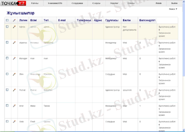 Точка KZ компаниясының қызметкерлерінің жұмыс уақытын ұйымдастыруға арналған SaaS негізіндегі веб-жүйені жобалау және жүзеге асыру