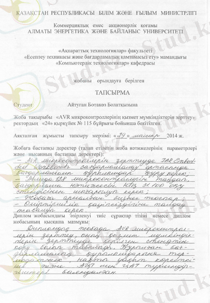 Дипломдық жобаның мақсаты AVR микроконтроллерінің қызмет