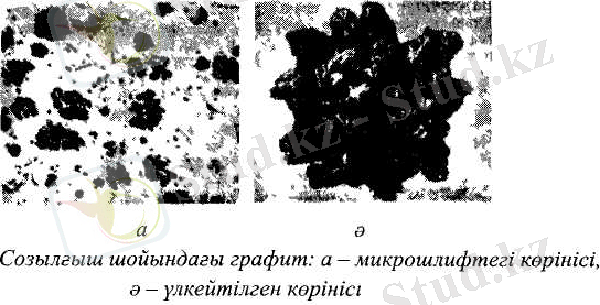 Көміртегінің біразы немесе барлығы бос күйінде пластиналық графит түрінде болады (5. 1-сурет) . Мұндай шойындар құрамында графит болғандықтан, сынығы сүр түсті болады.