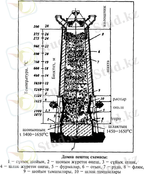 Шикізаттарды домнаға салар алдында оларды ұнтақтап магнитті бөлгіш арқылы өткізеді. Домналық пештің ішкі кабырғалары отқа төзімді материалдармен қапталады.