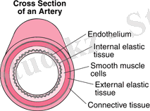 Артериялардың қабырғасы үш қабықтан тұрады. Ішкі қабық - tunica intima - тамырлардың қуысы жағынан эндотелимен астарланған, оның астында субэндотелий мен ішкі серпімді мембрана орналасады; ортаңғы қабық - tunica media - бірыңғай салалы бұлшық тінінен, серпімді талшықтармен ауысып, аларасып отыратын миоциттерден құралған; сыртқы қабық - tunica externa - дәнекер тінді талшықтардан тұрады. Артериялық қабырға серпімді қаңқа түзеді.