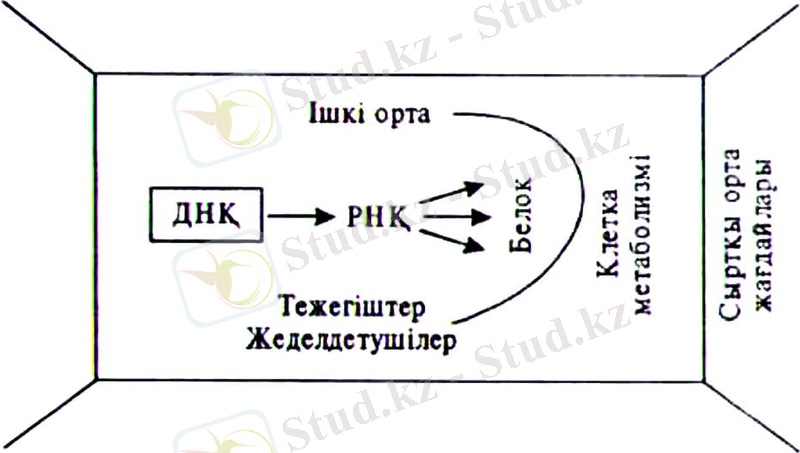 6. 11 - сурет . Клетка мегаболизміне ішкі және сыртқы жағдайлар ықпалының графикалық бейнесі (С. ИЛебедев, 1488) .