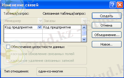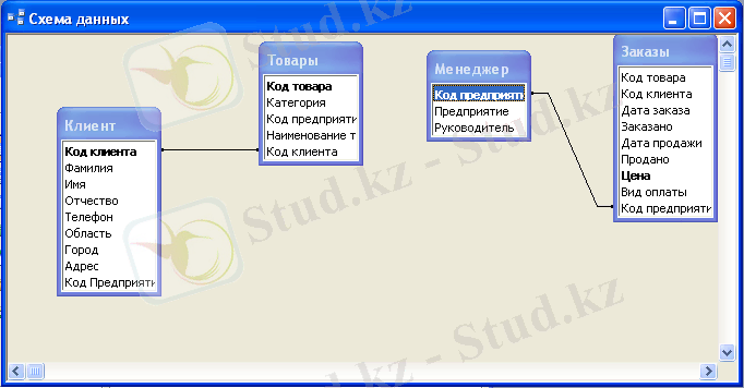 Ескерту: Сервис - Мәліметтер схемасы командасын беріп, кестелер арасында байланыс орнатылғанына көз жеткізуге болады.
