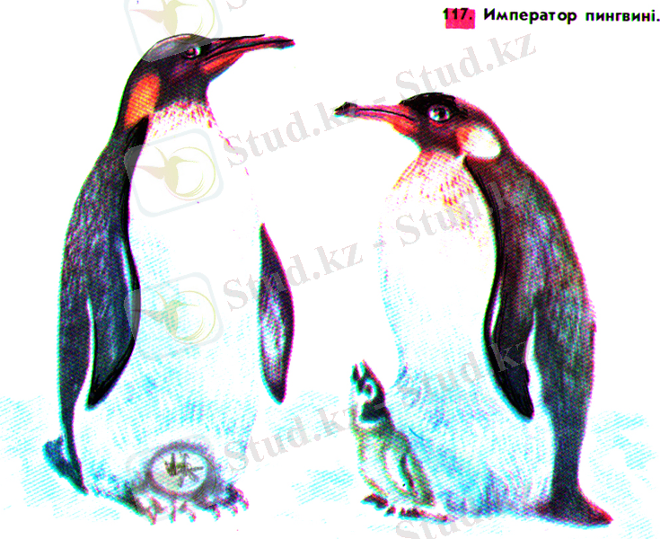 Пингвиндер отряды. Бұл өзінше ерекшелігі бар құстар. Олардың қанаттары" жіңішке, әрі қысқа ескек тәрізді және ұшуға жарамайды. Пингвиндер сүңгу кезінде қанаттарымен суды еседі. Саусақтарының арасында жүзу жарғағы болады. Аяқтары тұлғасының артқы жағында орналасқан, сондықтан да пингвиндер құрлықта тік тұрады. Аяқтарының мұндай қалыпта болуы құс сүнгіген кезде қанатының жұмысын жеңілдетіп, сағатына 30 км жылдамдықпен жүзуіне септігін тигізеді. Пингвиндер судан тік жағалауға немесе биіктігі 1 метрге жуық мүз үстіне секіріп шыға алады. Оның ауыр қаңқсы да сүнгуін жеңілдетеді. Қауырсын жамылғысы өте қалың болады. Қанаттарында жінішке пәрі бар ерекше қабыршақты өте қатты қауырсындар орналаскан.