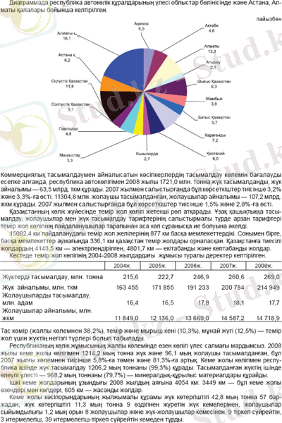 Қазақстан Республикасының көлік-коммуникация кешені темір жол, автомобиль, су, авиация көліктерін, сондай-ақ технологиялық көліктің әр алуан басқа да түрлерін біріктіреді.