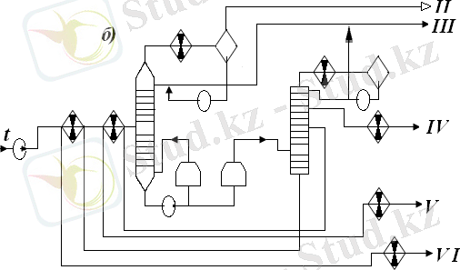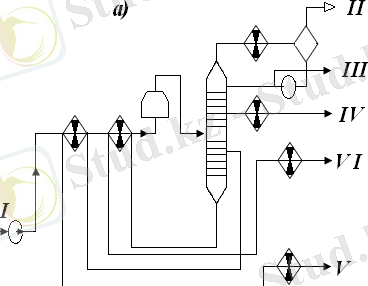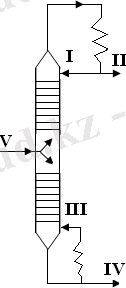 І - сұйық ағын; ІІ - ректификат; ІІІ - қайта берілетін ыстық ағым; ІV - қалдық; V - шикізат