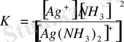 Түзілген комплекс ионлдары әлсіз электролиттер сияқты аз мөлшерде болса да иондарға ыдырауы мүмкін. Олардың иондарға ыдырауын сандық жағынан тұрақсыздық константасы (К т. з. ) анықтайды. [Ag(NH 3 ) 2 ] + ↔︎Ag + + 2NH 3 Комплекс иондарының диссоциациялануы аз мөлшерде және қайтымды процесс болғандықтан оларға әрекеттесуші мссалар заңын қолданып диссоциациялану константасын (тұрақсыздық константасын ) жазуға болады.