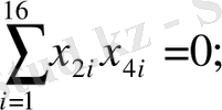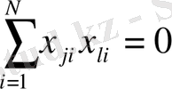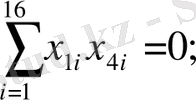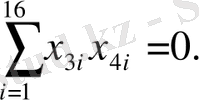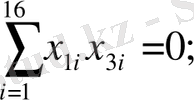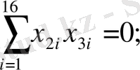 2) Ортогоналдылық қасиеті: жоспар матрицасының кез-келген екі векторлық бағанының құрамына кіретін өнімдердің сомасы нөлге тең болады:
