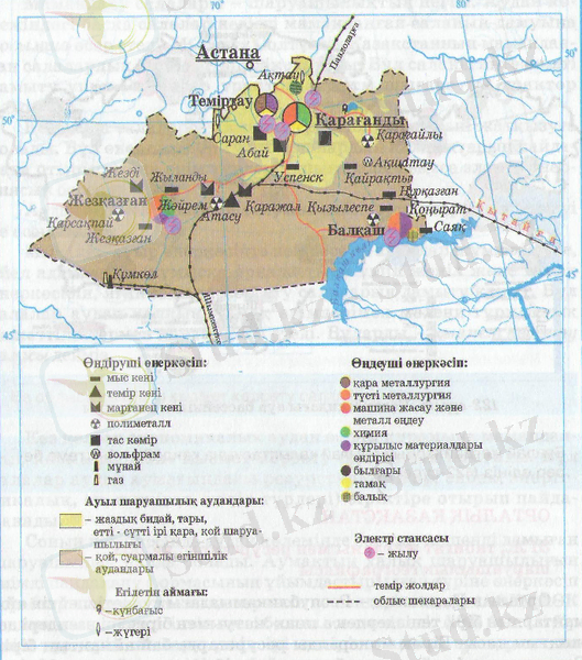 Орталық Қазақстан экономикалық ауданының картасы.