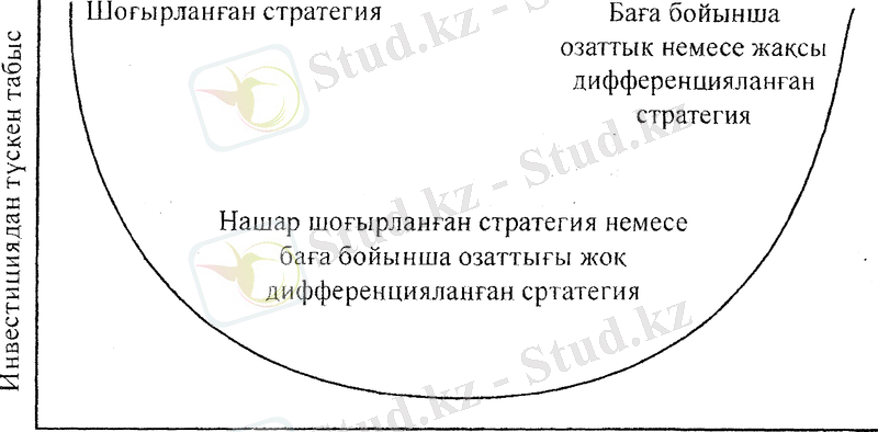 7 сурет. Портердің жалпы стратегиялыц үлгісіндегі нарыктагы үлес пеи инвестициядаи түсетін табыстын байланысы