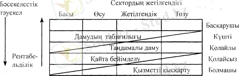 Сектордың жетілгендігі түрлі қаржылық сипат, ерекше бәсекелестік құрылымдар, стратегиялық қызметтің түрлі әдістері сәйкес келетін оның даму барысындағы түрлі сатылардағы өзгерістерді көрсетеді.