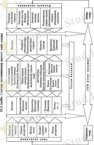 Аталған сыртқы экономикалық байланыстарды дамыту республиканың шетелдермен валюта-қаржы, есеп-қисап жөне кредит қатынастарының негізіне қойылған (21. 2 сызбаны қараңыз) .