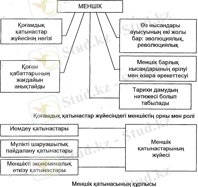 Бүкіл қоғамдық құрылыстың өзегі болып табылатын меншікті 1-сызба сипаттайды.