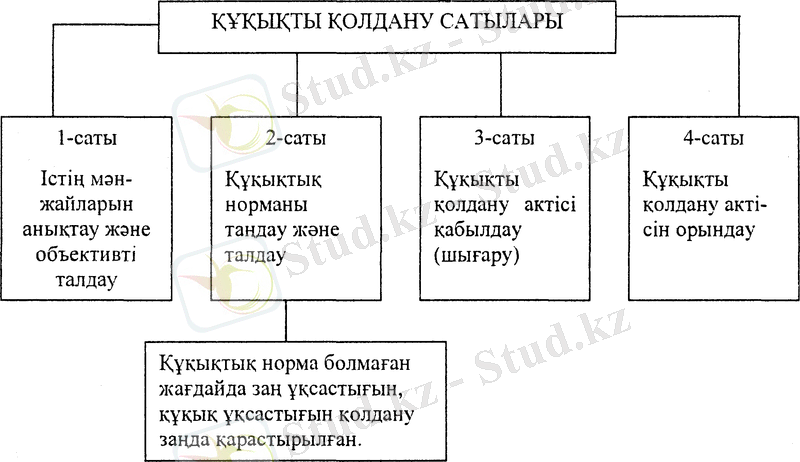 Құқықты қолданудың мынадай сатылары болады: