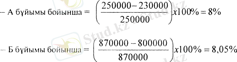 - А бұйымы бойынша = 17 х 8% = 13600 теңге - экономия (үнемделген) ;