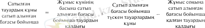 3. Ай барысында сатылған тауардың жалпы құнынан (сатылған өнімнен түскен жалпы түсімінен) ай соңында қалған тауар құнының қалдығын (1330 шоттың 2 субшоты бойынша, сальдосын) алып тастап шығарамыз. Бұл есептеу касса мен тауар туралы есеп берудің негізінде жасалады.