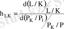 Капиталды еңбекпен алмастыру шегі. Бағалық диспропорцияны жоюдың тиімді саясаты капиталды түрлі өндіріс салаларында алмастыруға қатысты. Экономистер оны өндіріс факторын икемді алмастыру деп есептейді. Оны бағдарлы түрде анықтау барысында еңбек үлесі пайызының капитал қатынасына жақындығын нысан етіп алады (қатынас “еңбек-капитал” немесе α/К) капитал бағымының пайыздық өзгерістерін салыстырмалы қарастыруға, еңбек бағасына қатысты (Р к / Р і ) . Алгебраның икемділік η α К мәнін де төмендегі формулаға сүйенеді, осыған сәйкес шамасы айқындалады: