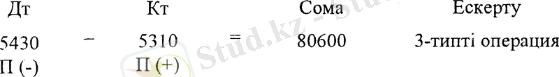 4) 32 теңге сомада қолма-қол ақша. Бұл жағдайда бухгалтерлік жазу төмендегідей болады: