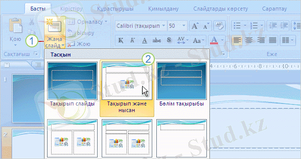 2. Осы орналасуы бар слайдты кірістіру үшін орналасуды нұқыңыз.