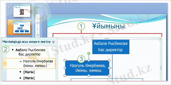 1. Ұйымдастыру диаграммасы қолданылған тақырып түстерін қабылдайды.