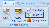 Диаграмманы осы жолмен кірістіруді қалаған жағдайда SmartArt тармағын Кірістіру қойындысынан іздеңіз.