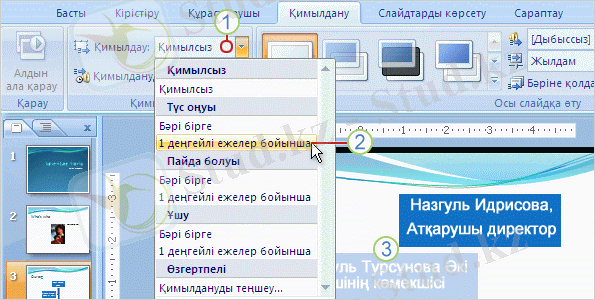 Сонымен қатар, басқа да бағыттарда жұмыс істей аласыз: Слайдтағы бар таңбалаушы тізімін