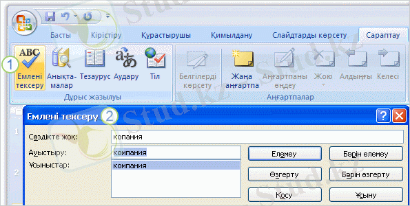 1. Сараптау қойындысында Емле ережесі түймешігін басыңыз.