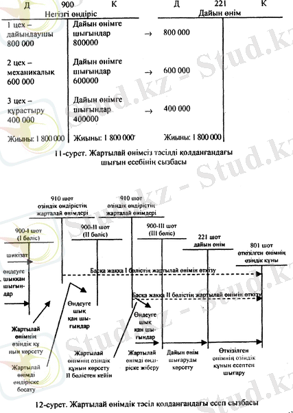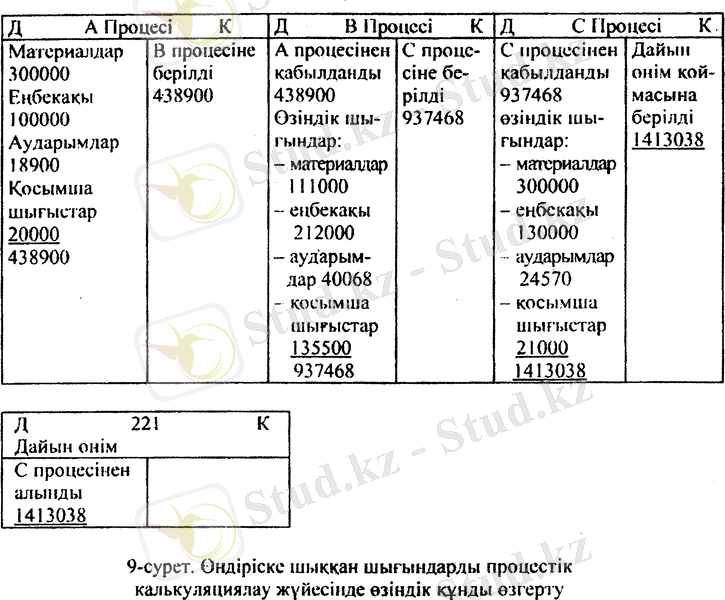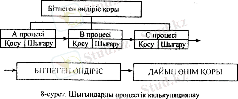 Шығындарды процестік калькуляциялау 8-суретте, ал өзіндік кұнды өндіріс, шығындарын процестік калькуляциялау жүйесінде өзгерту - 9-суретте келтіріліген.