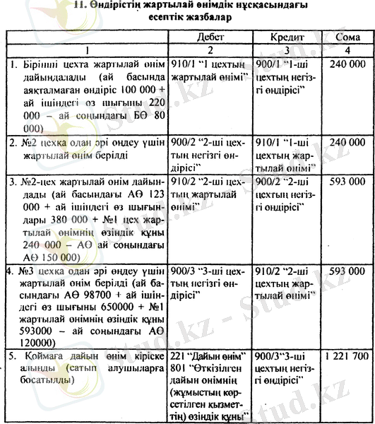 Кейінгі цехтардың жартылай өнімдерінің немесе бұрынғы цехтардың (бөлістердің) жартылай өнім өндірісінің нақты шығындары бөлістің өзіндік құндарын калькуляциялауда, әдетте "Өзіндік өндірістің жартылай өнімдер кешенді бабында (11 -кесте) көрсетеді.