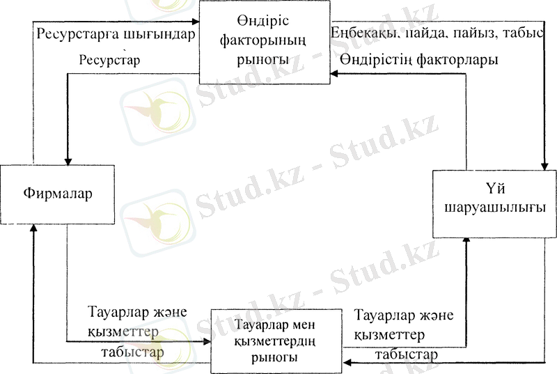 1-сурет. Экономикалық игіліктердің айналымы меп экономикалық агенттердің өзара әрекеті