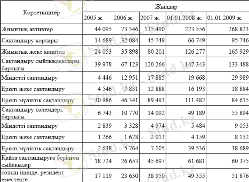 Кесте 1 - Қазақстанның сақтандыру рыногының негізгі көрсеткіштері (млн. теңгемен)