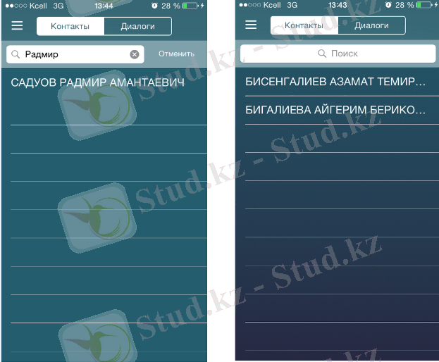 «Чат» сервисі қосымша пайдаланушыларына мәтіндік хабарламалармен алмасуға мүмкіндік береді. Сервисте сұхбаттасушыны пайдаланушының Т. А. Ә. арқылы іздеу мүмкіндігі жүзеге асырылған (Сурет 11) :