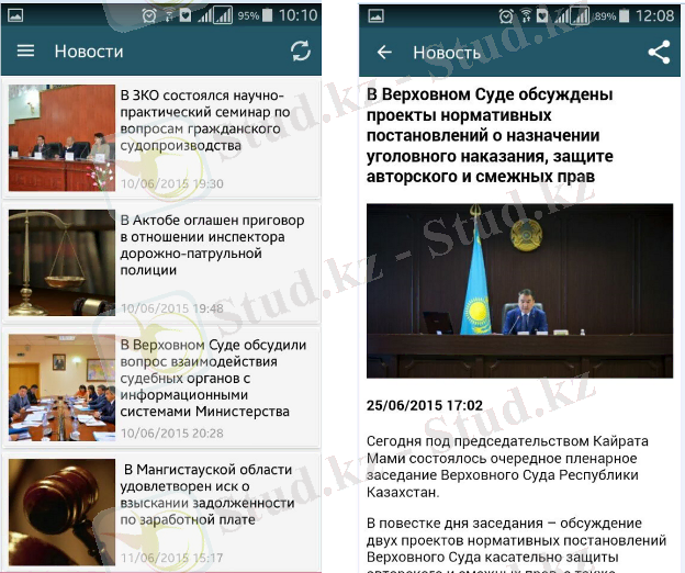 Android мобильдік платформасындағы «Сот кабинеті» мобильдік қосымшасы