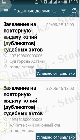 Осы сервис пайдаланушыға сот органдарына тапсырған сот құжаттарының мәртебесін бақылап отыруға мүмкіндік береді.