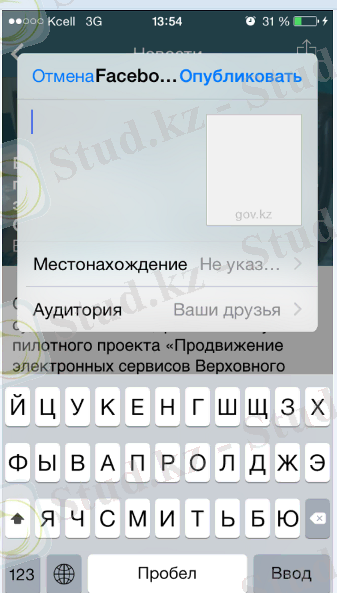 Сурет 4 - Facebook профилінде бөлісу