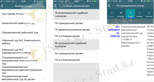 iOS мобильдік платформасындағы «Сот кабинеті» мобильдік қосымшасы