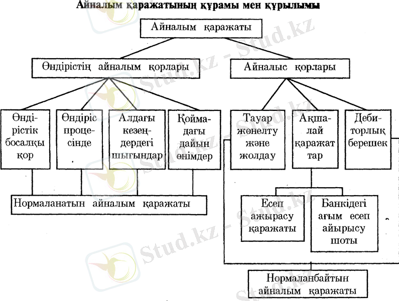 Әуелі кәсіпорын құрылғанда айналым қаражаттары жарғылық қордың бір бөлігі ретінде қалыптасады (капитал) . Олар тауарлық өнімдерді өндіруге байланысты өндірістік босалқы қорларды сатып алу үшін жұмсалады. Дайын өнім қоймаға түседі, содан соң тұтынушыларға жіберіледі Оның төлеуге дейінгі мезетінде өндіруші ақша қаражаты мұқтажынан жоқшылық көреді. Мұқтаждың бұл деңгейі салынған қаражаттың көлеміне ғана емес, сонымен бірге алдағы есеп айырудың мөлшеріне де байланысты, ол жыл ішінде түрлі себептермен тұрақсызданады. Сондықтан да кәсіпорын айналым қаражатын қалыптастыруда басқа да қиындық көздеріне ұшырайды - орнықты пассивтер, несиегерлік берешек, банк несиесі және басқа да несиегерлер.